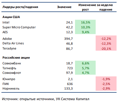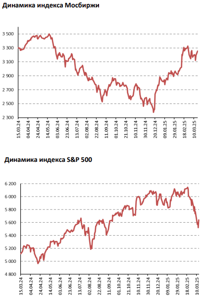 ▪ Индексы S&P 500 и NASDAQ Composite потеряли чуть больше 2% за неделю. Уклончивый ответ Трампа на вопрос о возможности наступления рецессии в американской экономике в опубликованном в выходные интервью стал поводом для сильной распродажи в рисковых активах в начале недели. Дополнительное давление на рынок оказали взаимные угрозы новых пошлин со стороны США и Канады и США и ЕС, а также политическое противостояние в Конгрессе в рамках обсуждения законопроекта о продлении финансирования федерального правительства. Среди корпоративных событий выделим отчет Oracle, указавший на стремительный рост заключенных контрактов, решение Southwest Airlines начать взимать плату за провоз багажа, понижение ожиданий по квартальным финансовым показателям со стороны американских авиакомпаний, а также консервативные по сравнению с консенсусом прогнозы менеджмента Adobe, Teradyne, Docusign, UiPath и SentinelOne. В лидерах роста по итогам недели акции Intel: бумаги позитивно отреагировали на новость о назначении на позицию генерального директора Лип-Бу Тана, ранее занимавшего пост главы разработчика ПО для производителей чипов Cadence Design Systems.▪ Российский рынок незначительно подрос на прошлой неделе. Неоднозначный геополитический фон не позволил отечественным активам сильно подрасти на прошлой неделе, хотя выход преимущественно позитивных новостей на выходных все же вызвал значимый рост российского рынка в этот понедельник. Среди корпоративных событий отметим сильную финансовую отчетность у Ренессанс Страхование, ЛСР и Совкомбанка, нейтральную у Татнефти, Русала и РусГидро и слабую у Делимобиля за 2П24/2024, позитивные финансовые результаты Сбера по РПБУ за февраль, смешанные операционные данные Аэрофлота за февраль и удручающие продажи Henderson в январе-феврале 2025. Отдельно выделим планы Русала приобрести до 50% глиноземного завода Pioneer в Индии, а также рекомендацию СД Полюса, Яндекса, ЛСР и НОВАТЭКа выплатить 730, 80, 78 и 46,65 рублей на акцию соответственно.